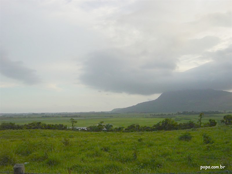 O rio Maquiné serpenteando em frente ao Morro Alto (ao fundo)